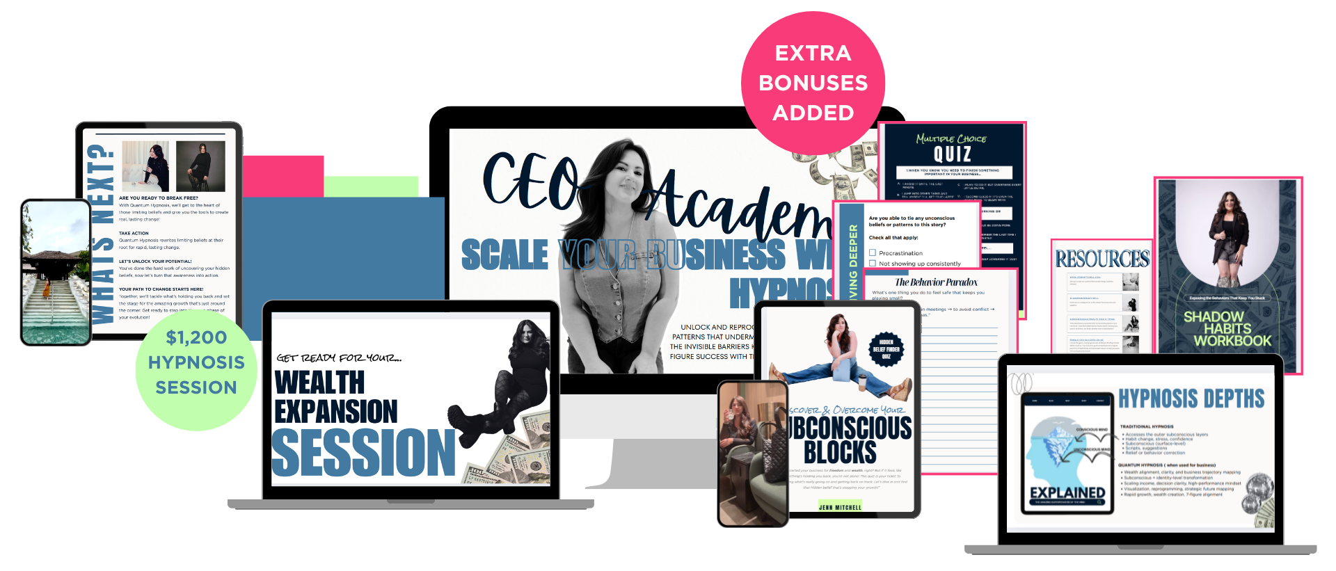 ✅ A groundbreaking subconscious Q&A hypnosis session where your higher mind delivers your personalized roadmap to unlock business clarity and confidence (no guesswork — real guidance)